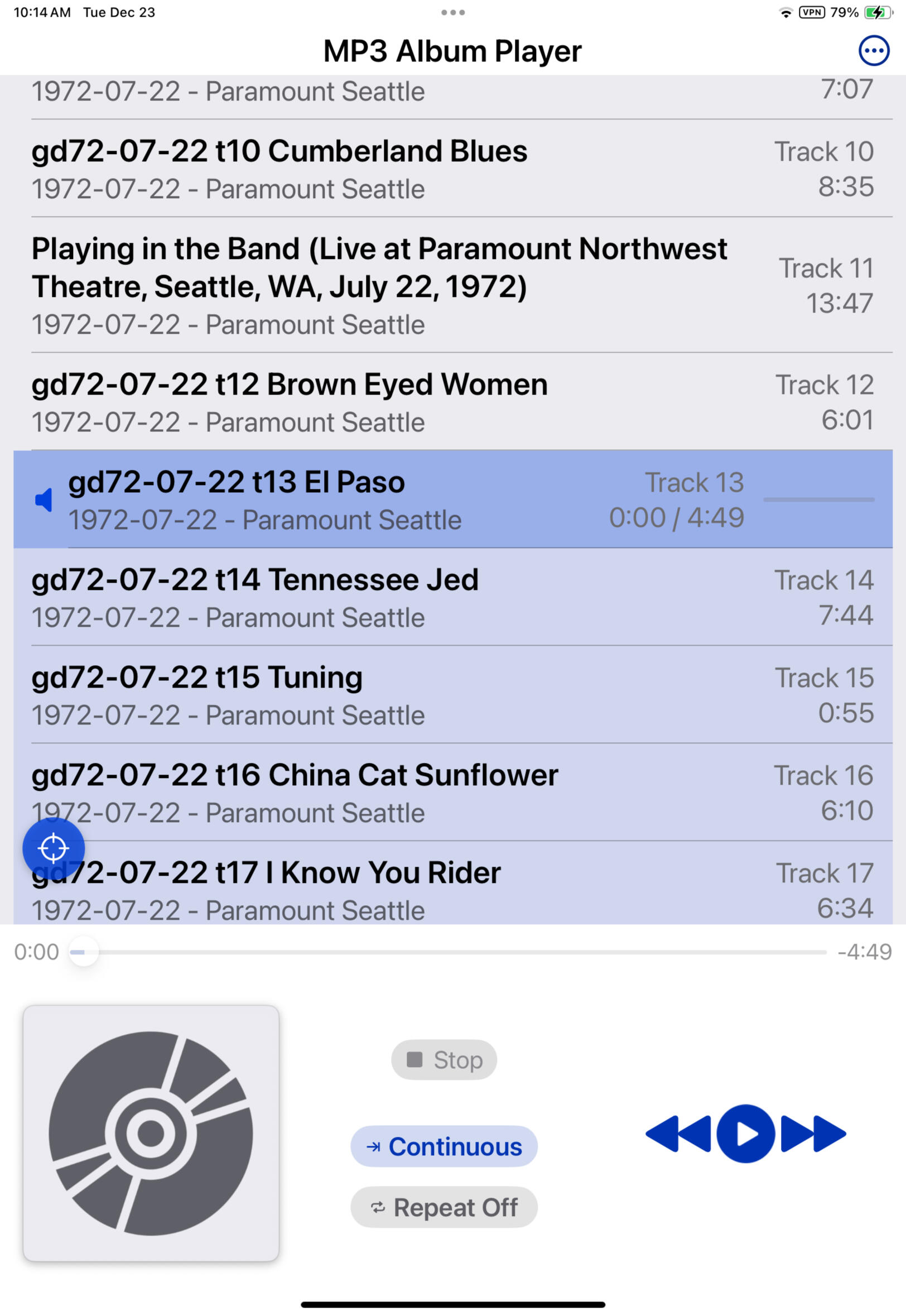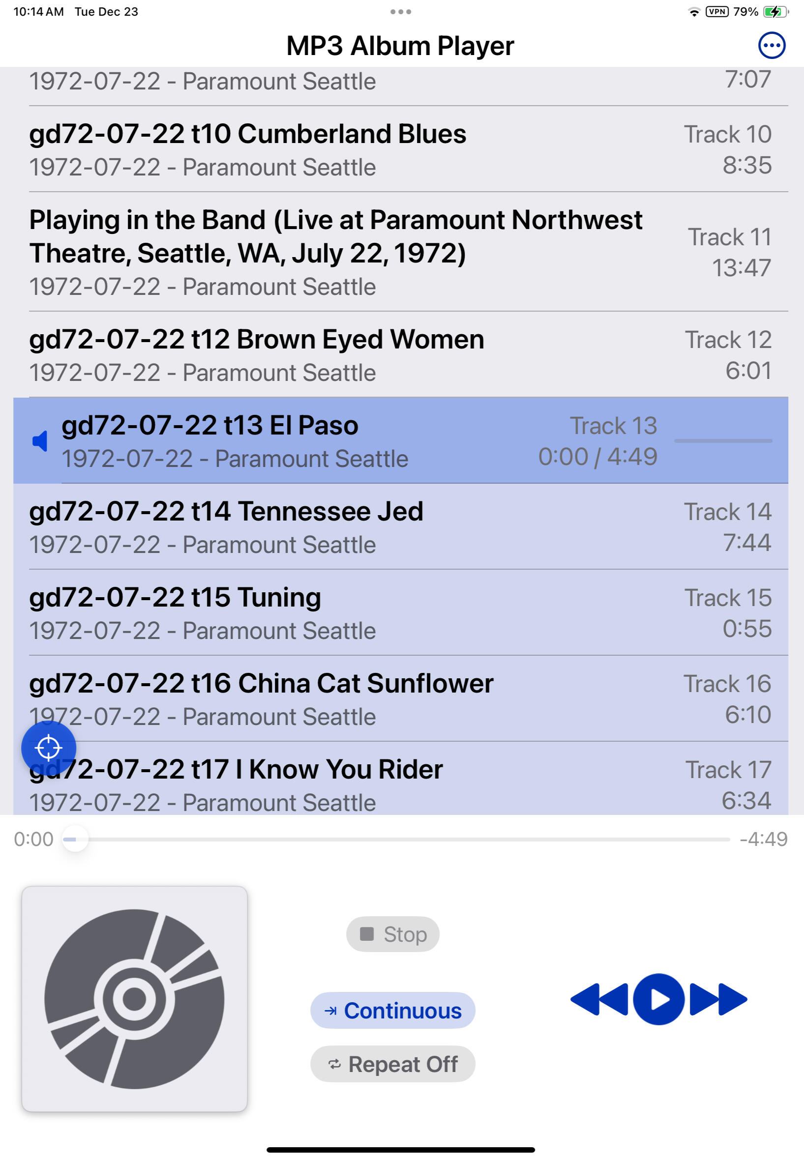 MP3 Album Player does not collect, store, or transmit any personal data. The app runs entirely on your device and does not connect to the internet.No accounts or sign-ins.
